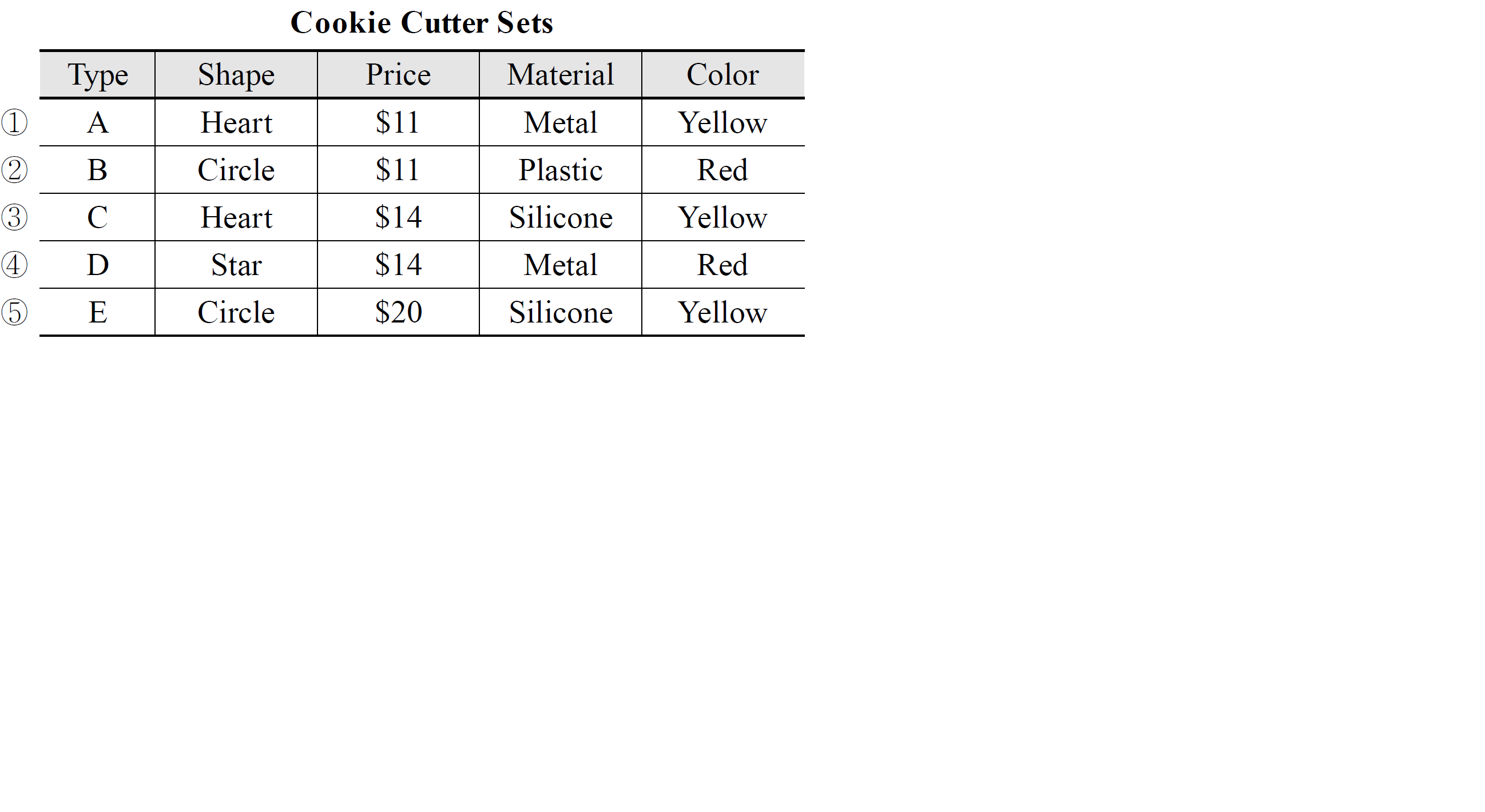 10. 다음 표를 보면서 대화를 듣고, 여자가 구매할 쿠키 커터 세트를 고르시오.