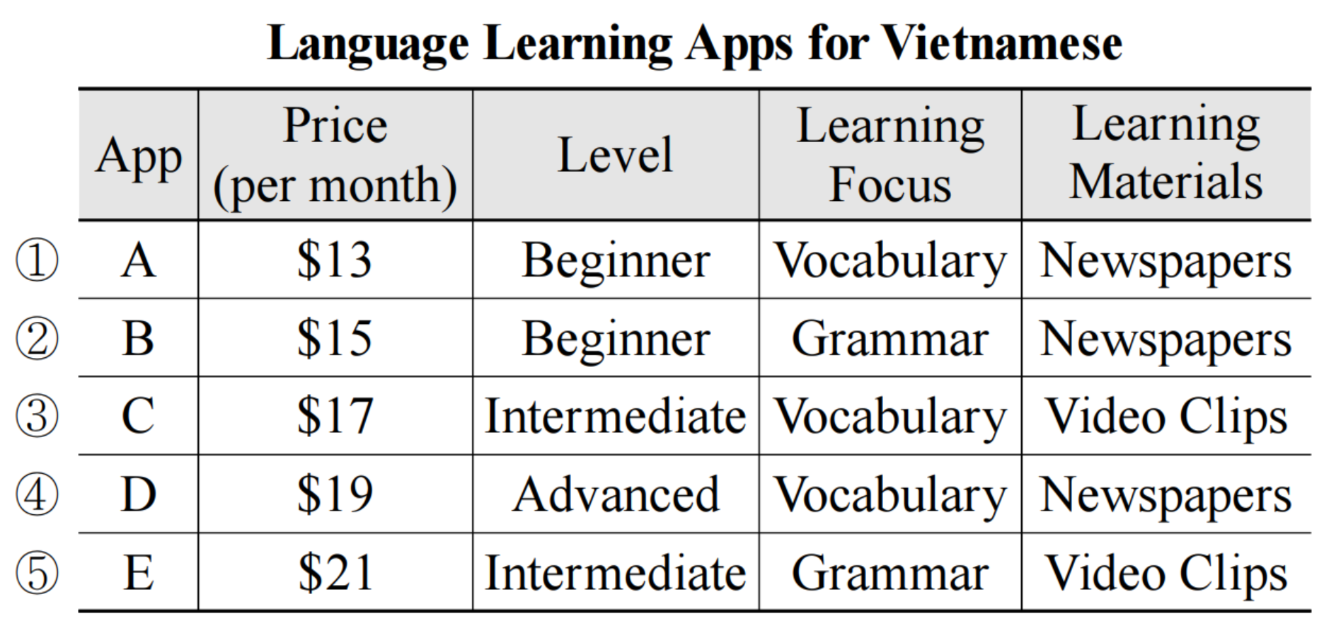 ⑤ \$70