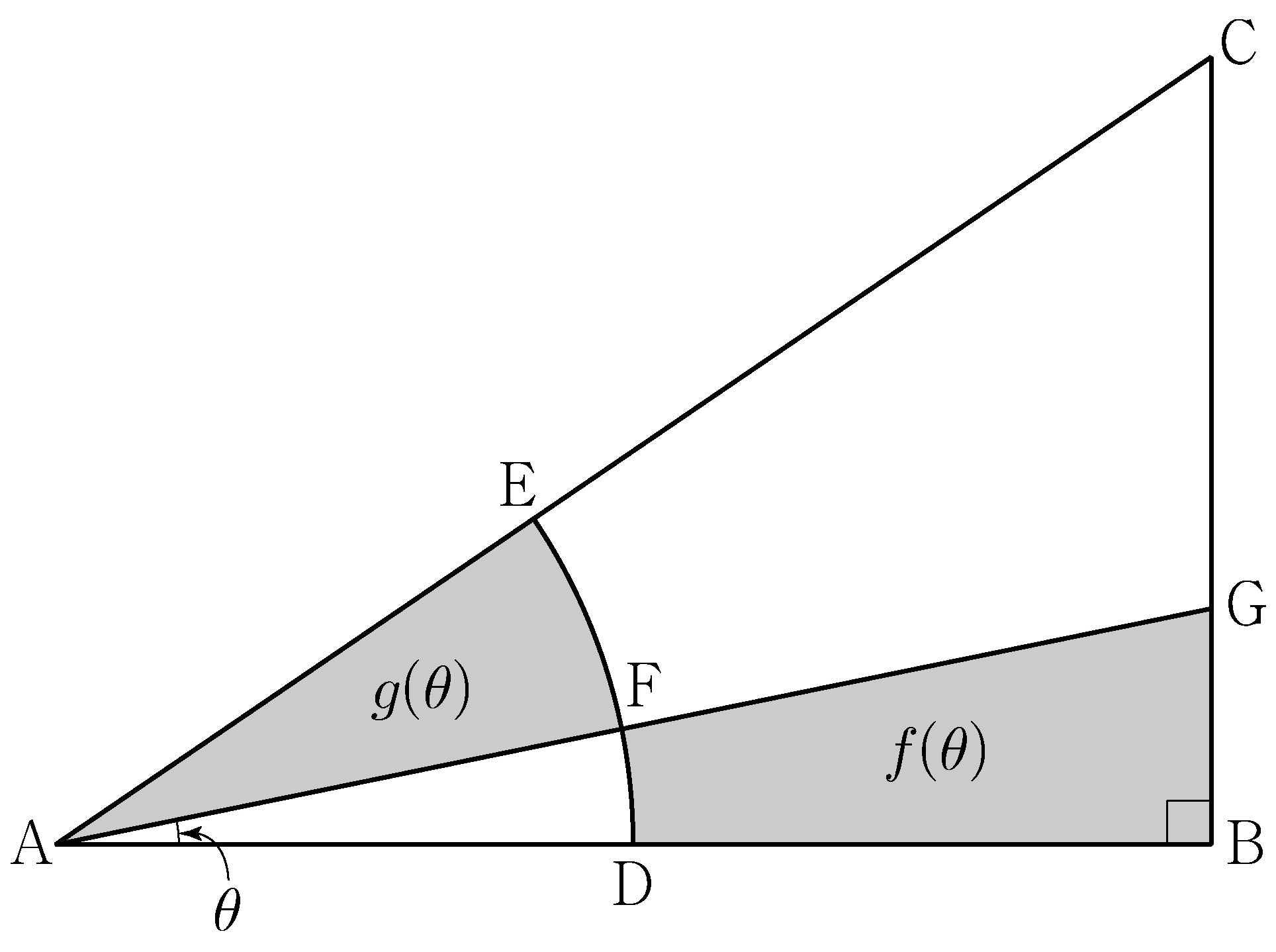 \( BAG = \theta \)라 할 때, 삼각형 ABG의 내부와 부채꼴 ADF의