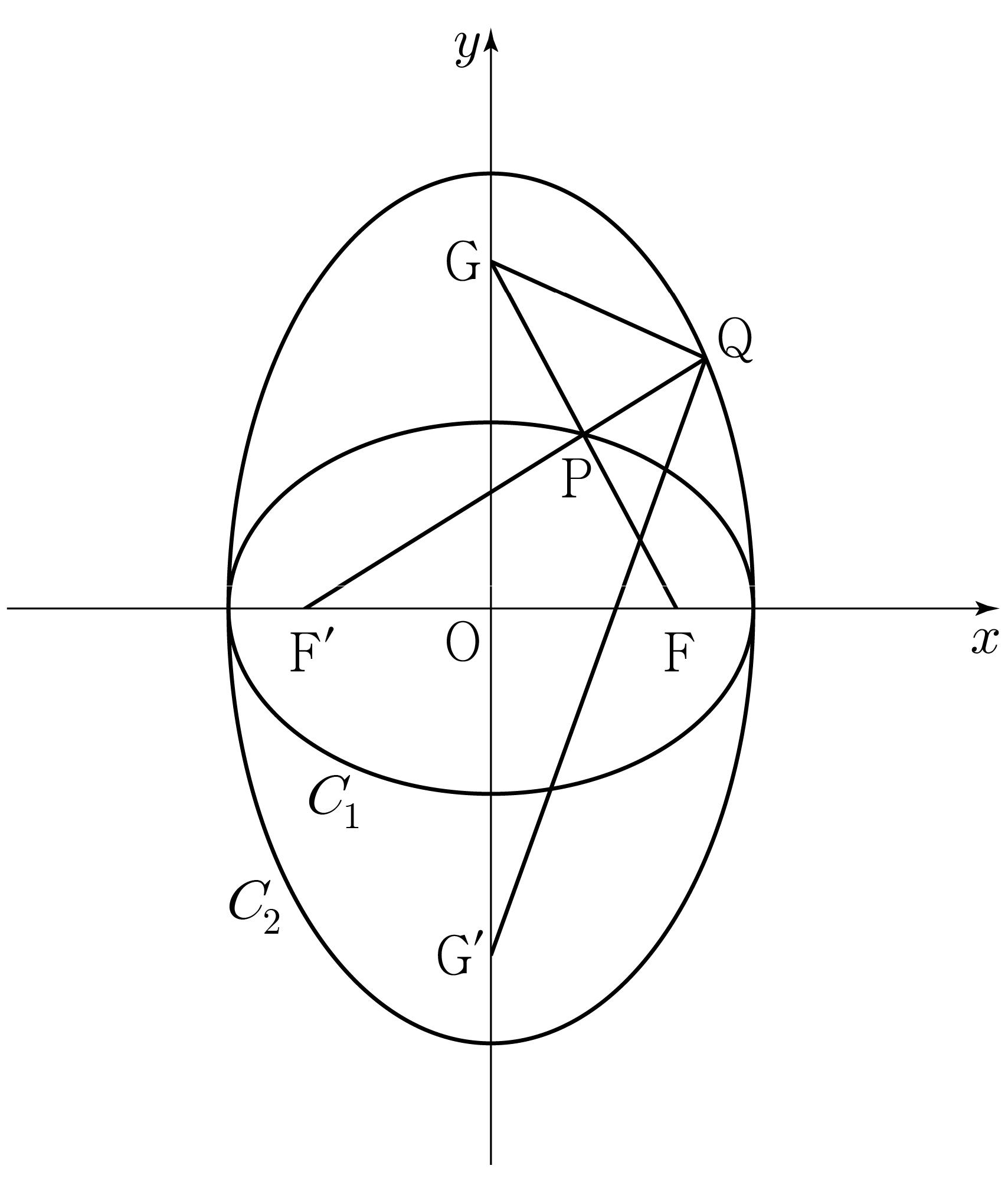 직선 \(F'P\)가 타원 \(C_2\)와 제1사분면에서 만나는 점을 \(Q\)라 하자.